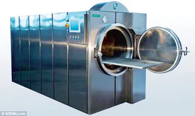 Trải qua 3 giờ được xử lý bằng hỗn hợp Potassium Hydroxide (công thức hóa học là KOH) ở nhiệt độ 180°C trong một lò kín (ảnh), “sản phẩm” thu được là hỗn hợp chất lỏng màu nâu xanh, gồm các chất axit, peptit, các chất đường, muối. Phần xương trắng xốp giao cho thân nhân của người chết. Đây được đánh giá là cách xử lý xác thân thiện ít gây ô nhiễm so với các cách quen thuộc từng được sử dụng.