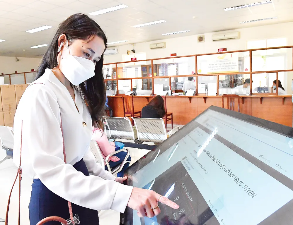 Dịch Covid-19 đã thay đổi mạnh cách sống của chúng ta. Đi qua đại dịch, ngày càng có nhiều người sử dụng công nghệ thông tin phục vụ cuộc sống, thuần thục làm việc từ xa, học tập online, mua sắm trực tuyến... Người có nhu cầu chăm sóc y tế có thể nhận tư vấn từ xa của bác sĩ, đổi thẻ bảo hiểm y tế qua mạng. Người lao động thuận tiện đăng ký nhận hỗ trợ từ Quỹ Bảo hiểm thất nghiệp qua app VssID và nhận tiền được chuyển thẳng tới tài khoản cá nhân… Đó cũng là kết quả của chuyển đổi số ở nhiều lĩnh vực trên địa bàn TPHCM thời gian qua, được thúc đẩy mạnh do phải thích ứng với dịch Covid-19. Trong dòng chảy đó, các cơ quan công quyền cũng bứt tốc, chuyển đổi số mạnh mẽ, mang lại diện mạo mới và cung cách mới trong phục vụ người dân.