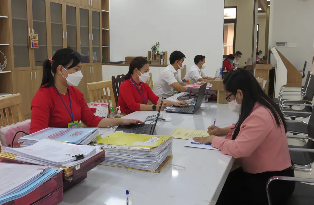 Từ sáng 7-2, tại trụ sở UBND xã Vĩnh Lộc B, huyện Bình Chánh đã có khá đông người dân đến làm thủ tục hành chính. Người dân lấy số thứ tự, xếp hàng đợi gọi tên giải quyết các thủ tục. Đội ngũ công chức của xã làm việc rất nghiêm túc, riêng tại bộ phận tiếp nhận và trả kết quả của xã có 5 công chức trực giải quyết việc cho dân. Lãnh đạo UBND xã Vĩnh Lộc B cho biết, tất cả công chức của xã đã đi làm đầy đủ. Ngày đầu tiên đi làm lại sau tết, sau phần chúc sức khỏe nhau, mọi người bắt tay ngay vào công việc từ đầu giờ sáng. Đặc thù là xã có dân cư đông của thành phố, nhu cầu giải quyết giấy tờ hành chính của người dân rất cao, nên cán bộ, công chức xã Vĩnh Lộc B phải làm việc khẩn trương để đáp ứng yêu cầu của người dân và doanh nghiệp.