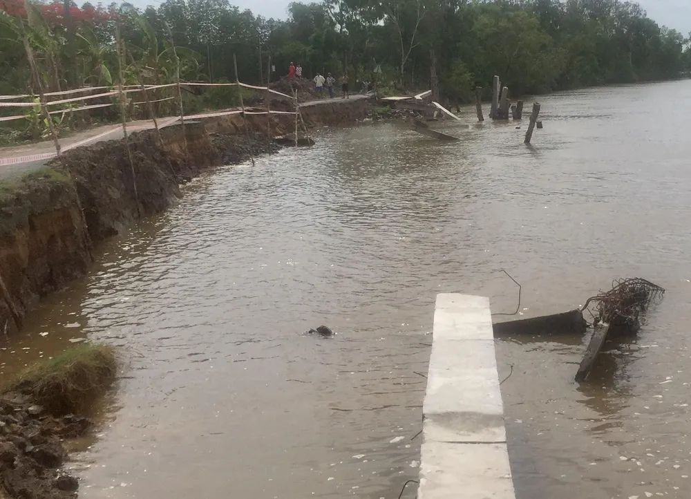 Đoạn kè còn lại gần đó cũng xuất hiện vết nứt trên mặt lộ, trong thời gian tới có thể bị sạt lỡ tiếp tục. Người dân địa phương rất bức xúc trước việc công trình khắc phục sạt lở chưa hoàn thành thì bị… sạt lở.