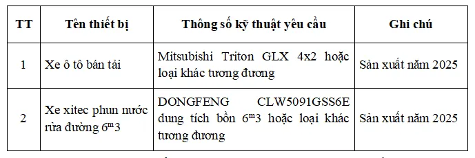Hiện nay, Công ty Cổ phần 715 chúng tôi có nhu cầu mua trang bị mới 01 xe ôtô bán tải & 01 xe xitec nước 6m3 sản xuất năm 2025, cụ thể: