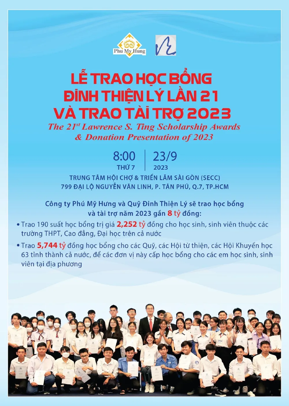 Trong 18 năm qua, Công ty Phú Mỹ Hưng và Quỹ Đinh Thiện Lý đã trao tặng hơn 166 tỷ đồng học bổng cho học sinh, sinh viên vượt khó, con em dân tộc thiểu số, trẻ em khuyết tật, mồ côi… nhằm hỗ trợ cho các em có điều kiện tiếp tục học tập, nâng cao năng lực cũng như góp phần ươm mầm tài năng cho đất nước Việt Nam.
