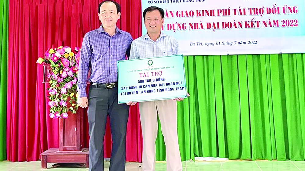 Công ty TNHH MTV XSKT Đồng Tháp và Công ty TNHH MTV XSKT Bến Tre bàn giao kinh phí tài trợ đối ứng xây dựng Nhà Đại đoàn kết năm 2022