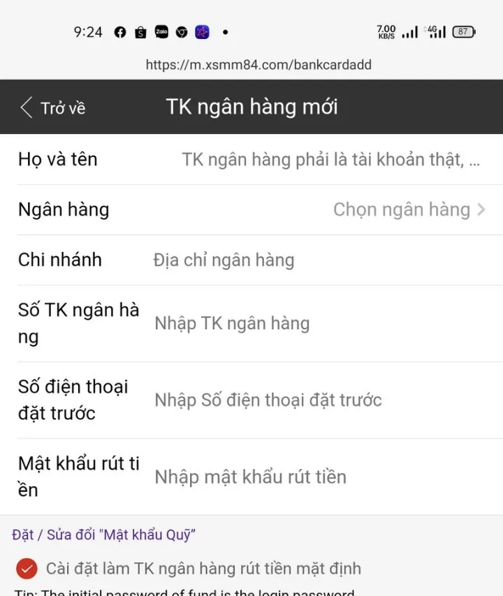 + Chuyển tiền đặt cọc để làm đại lý vé số.