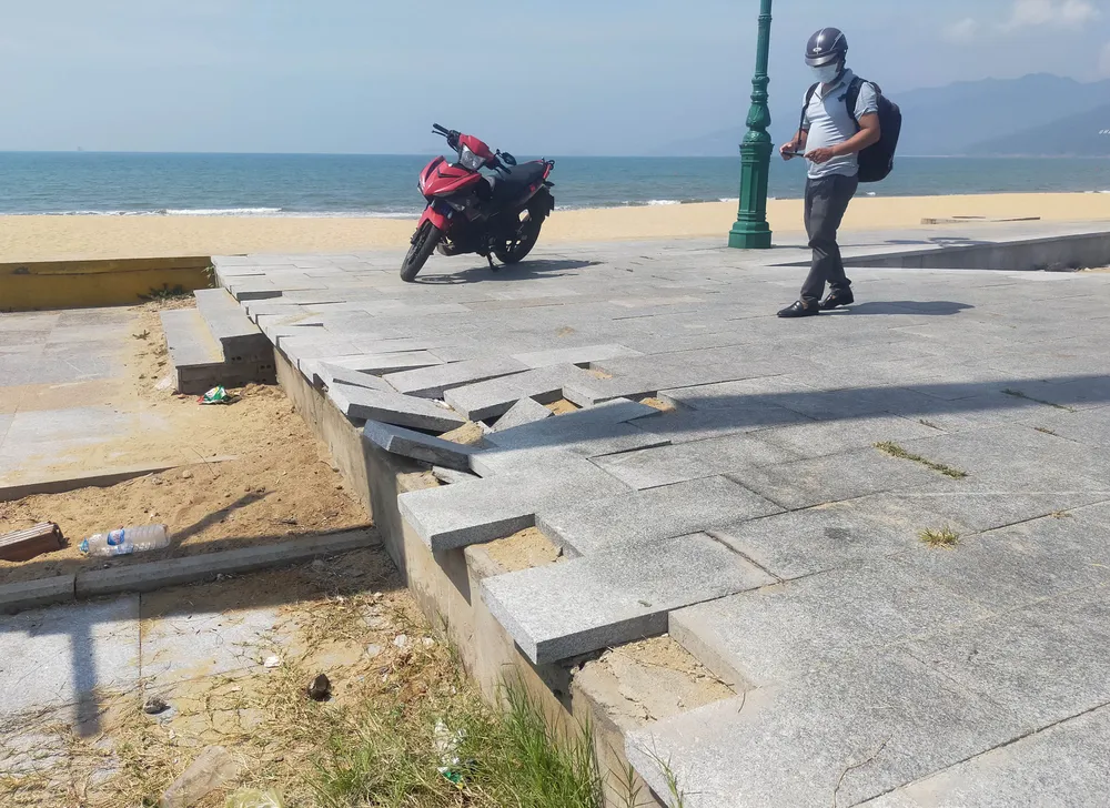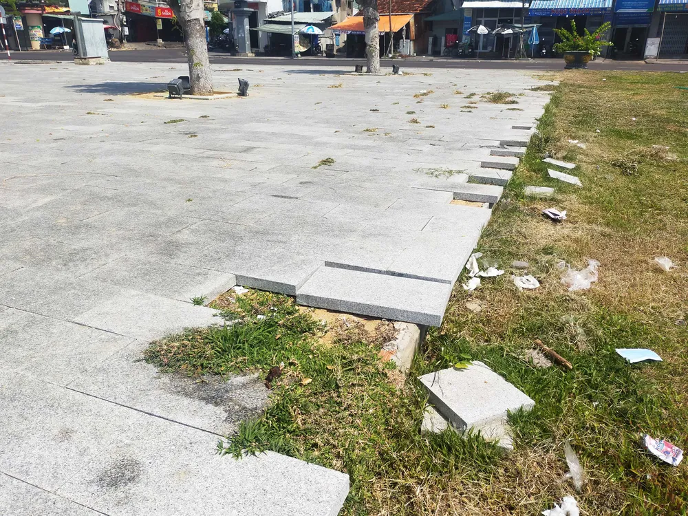 Nhiều người dân sống dọc đường Xuân Diệu phản ánh, công trình vừa được xây dựng đưa vào sử dụng khoảng năm 2020. Gần đây, công trình phát sinh nhiều hư hỏng, vỡ toác, mặt đá lát nền sụt lún vỡ kết nối; công trình không được vệ sinh chăm sóc kỹ lưỡng nên đất đá, cỏ dại mọc bừa bãi…