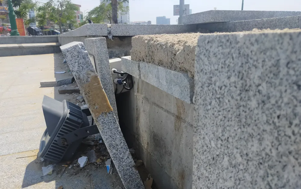 Đặc biệt, nhiều người lo ngại đến hệ thống đèn chiếu sáng của công trình đang bị hư hỏng, nguy cơ rò rỉ điện rất mất an toàn cho người dân và các du khách khi đến công viên, tắm biển…