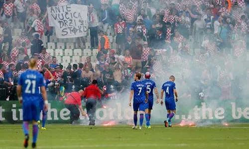Pháo sáng được các CĐV Croatia ném xuống sân