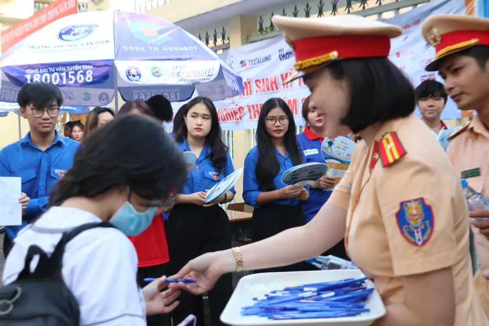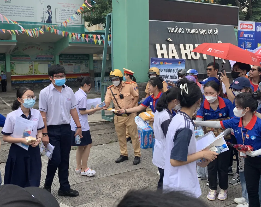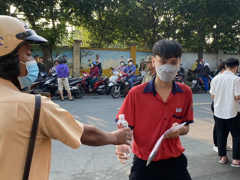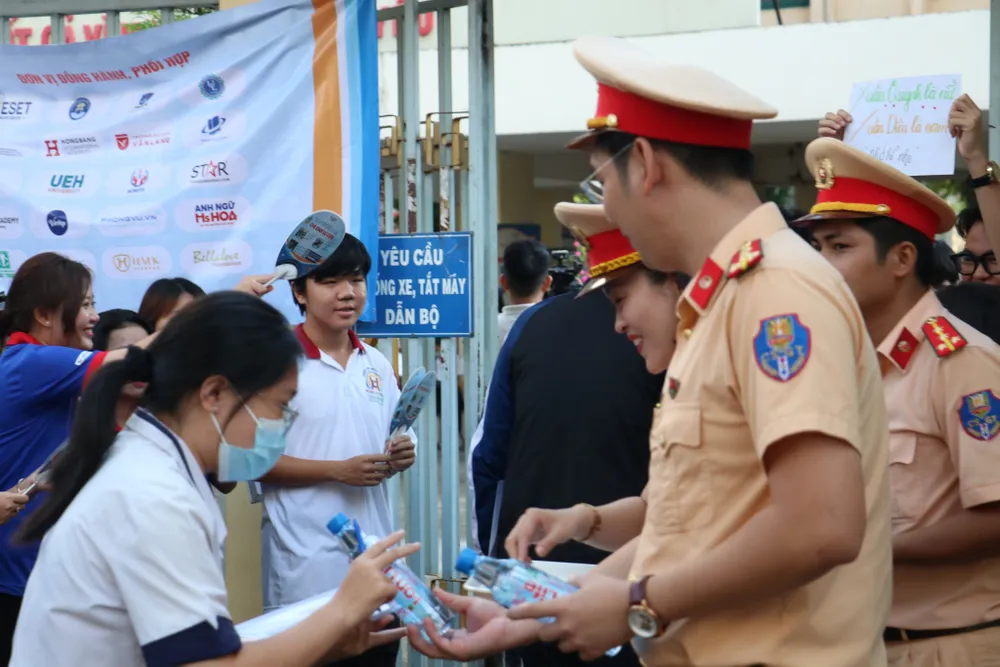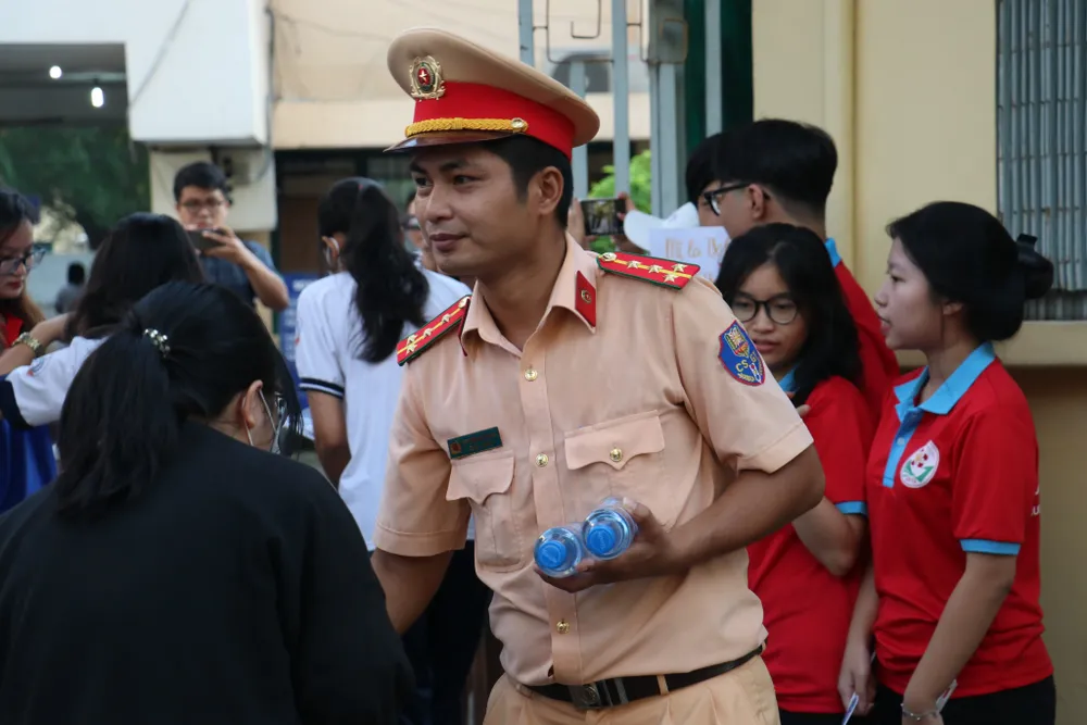 Hầu hết các tuyến đường tại đây đều không xảy ra tình trạng ùn ứ, kẹt xe diễn ra. Lực lượng chức năng còn bố trí cán bộ chiến sĩ tặng nước suối, khăn lạnh cho các em thí sinh.