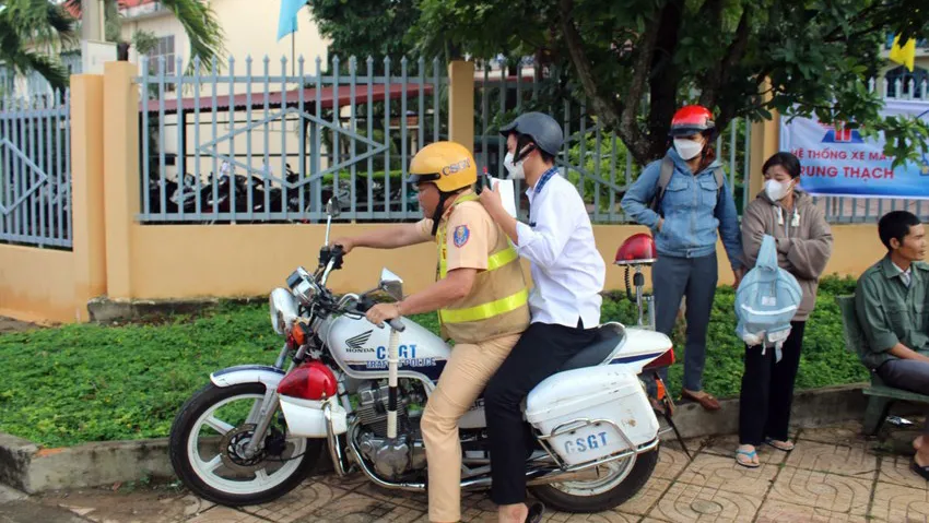 * Cùng ngày, Đội CSGT – Trật tự, Công an huyện Cư M’gar đã hỗ trợ một nam sinh đi nhầm điểm thi đến điểm thi kịp thời.