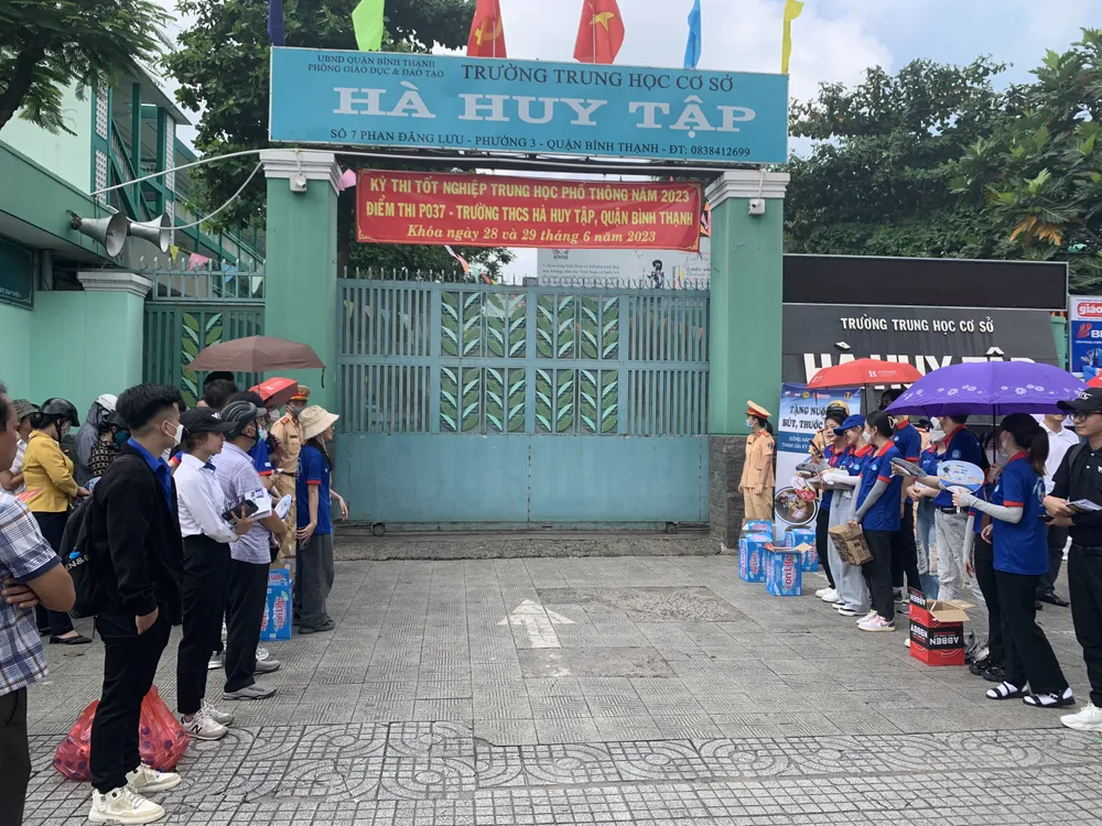 Ghi nhận tại khu vực điểm thi Trường THCS Hà Huy Tập (đường Phan Đăng Lưu, phường 3, quận Bình Thạnh), từ sáng sớm có khá đông lực lượng chức năng như: bảo vệ dân phố; Công an phường; Đội CSGT Tân Sơn Nhất, Phòng CSGT đường bộ - đường sắt (PC08), Công an TPHCM; Đội CSGT-TT Công an quận Bình Thạnh… túc trực để điều tiết giao thông, hướng dẫn thí sinh vào phòng thi, hướng dẫn phụ huynh sắp xếp xe ở vị trí chờ đón con, em là thí sinh dự thi một cách gọn gàng, an toàn.