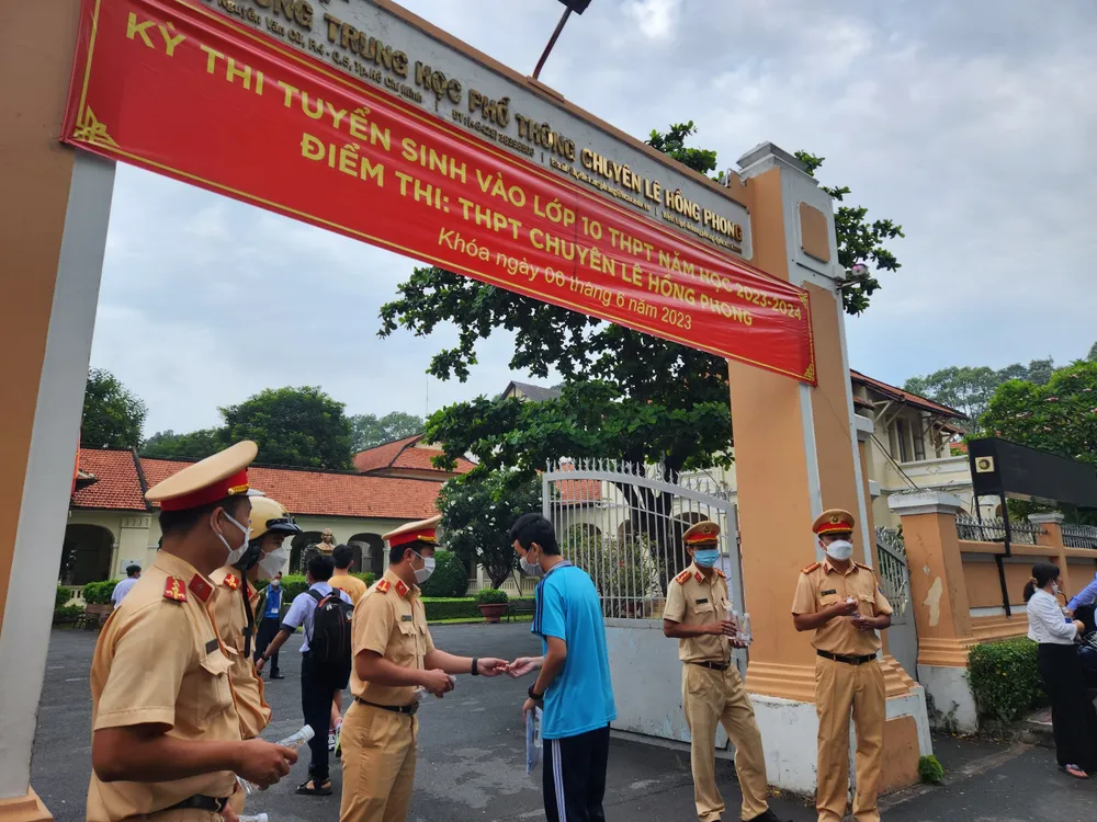 Bên cạnh đó, lực lượng CSGT thuộc Phòng PC08 cũng phối hợp với Công an quận, huyện và TP Thủ Đức điều hòa giao thông ở điểm thi để kịp thời giải quyết sự cố về giao thông; ưu tiên tạo điều kiện thuận lợi, hỗ trợ thí sinh, giáo viên và xe vận chuyển đề thi, bài thi đến địa điểm thi an toàn.