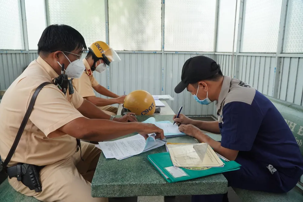 Qua kiểm tra xe do tài xế Danh Tr. (SN 1992) chở theo cuộc thép từ đường Nguyễn Văn Linh về hướng Quốc lộ 1A, lực lượng phát hiện cuộn thép đã có chằng buộc nhưng chưa đúng quy định. CSGT đã nhắc nhở anh Tr. và cho xe tiếp tục di chuyển.