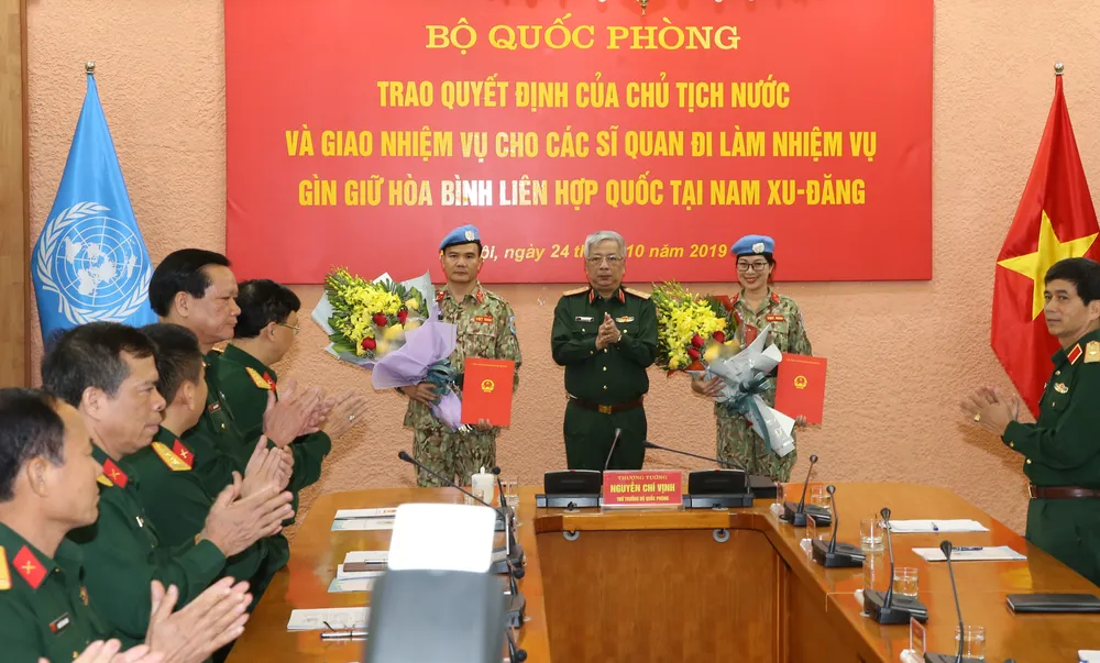 Ngày 24-10, tại Hà Nội, Bộ Quốc phòng  trao quyết định của Chủ tịch nước và giao nhiệm vụ cho 2 sĩ quan làm nhiệm vụ tại Phái bộ Gìn giữ hòa bình Liên hiệp quốc(GGHB) tại Nam Sudan.