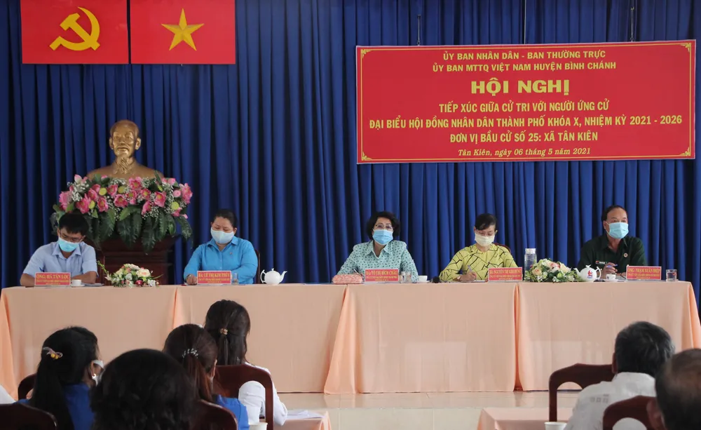 Sáng 6-5, UBND - Ủy ban MTTQ Việt Nam huyện Bình Chánh tổ chức hội nghị tiếp xúc cử tri với người ứng cử đại biểu (ĐB) HĐND TPHCM khóa X, nhiệm kỳ 2021-2026, đơn vị bầu cử số 25 tại xã Tân Kiên.