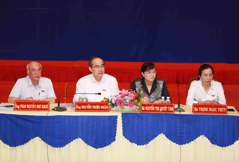 Sáng 20-10, đoàn Đại biểu Quốc hội (ĐBQH) TPHCM gồm các ĐB Nguyễn Thiện Nhân, Ủy viên Bộ Chính trị, Bí thư Thành ủy, Trưởng đoàn ĐBQH TPHCM; Nguyễn Thị Quyết Tâm, Phó Bí thư Thành ủy, Chủ tịch HĐND TPHCM; Phan Nguyễn Như Khuê, Phó Trưởng đoàn chuyên trách ĐBQH TPHCM; Trịnh Ngọc Thúy, Phó Chánh án TAND TPHCM, đã có buổi tiếp xúc cử tri quận 2, diễn ra tại Nhà Thiếu nhi quận 2.