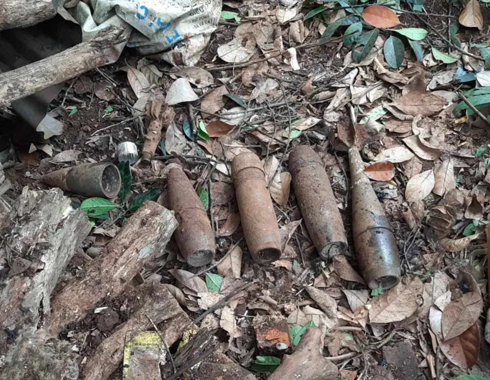Theo ông Chói, vào khoảng 12 giờ cùng ngày, người dân thôn Tiêng (xã Tân Sơn) nghe một tiếng nổ lớn phát ra từ nhà anh A.T. (44 tuổi, ngụ thôn Tiêng). Khi mọi người chạy đến thì phát hiện thi thể anh A.T. không còn nguyên vẹn. Cách hiện trường khoảng 3m, bên hông nhà anh A.T. có một số đầu đạn cối, 1 chiếc cưa tay và những hố đất sâu được xác định là nơi nạn nhân ngồi cưa đầu đạn. Tường nhà A.T. cũng bị thủng 2 lỗ lớn.