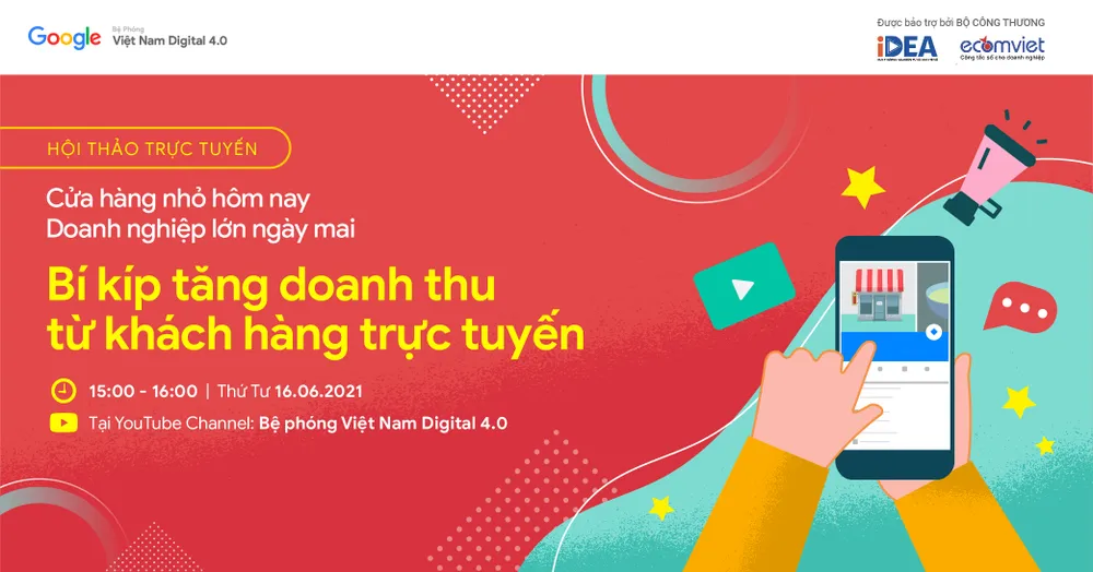 Trước băn khoăn của cộng đồng doanh nghiệp có quy mô vừa và nhỏ, chương trình “Bệ phóng Việt Nam Digital 4.0” - một sáng kiến của Google, được bảo trợ bởi Bộ Công thương Việt Nam, Cục Thương mại điện tử và Kinh tế số (IDEA), Trung tâm Phát triển thương mại điện tử (ECOMVIET) sẽ tổ chức buổi hội thảo trực tuyến tháng 6 với chuyên đề: “Cửa hàng nhỏ hôm nay - Doanh nghiệp lớn ngày mai: Bí kíp tăng doanh thu từ khách hàng trực tuyến”.