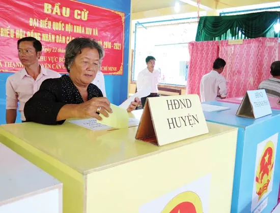 Đúng 6 giờ 45 ngày 22-5, khu vực bỏ phiếu số 14, ấp Thạnh Hòa, xã đảo Thạnh An, huyện Cần Giờ, TPHCM khai mạc bầu cử. Gần 100 cử tri đầu tiên là người dân và cán bộ - chiến sĩ Đồn Biên phòng Thạnh An trong trang phục chỉnh tề, đã có mặt để lựa chọn người đại biểu cho mình vào Quốc hội và HĐND các cấp.