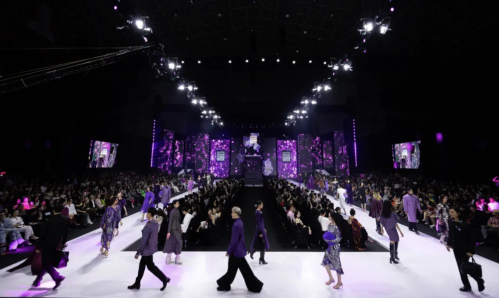 Với chủ đề #ShapingTheFuture - Kiến tạo tương lai, Adrian Anh Tuấn đem đến AVIFW F/W những thiết kế mang kiểu dáng đa dạng, kết hợp chất liệu thời trang bền vững, thân thiện với môi trường. Lấy sắc tím làm chủ đạo, mang thông điệp tình yêu thủy chung, 80 thiết kế theo phong cách hiện đại, thanh lịch nhưng vẫn phảng phất nét châu Á.
