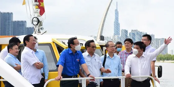 khảo sát sông Sài Gòn chiều 15-5-2022. Ảnh: DUYÊN PHAN