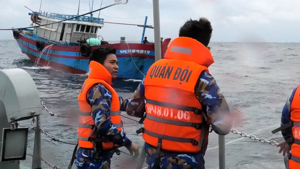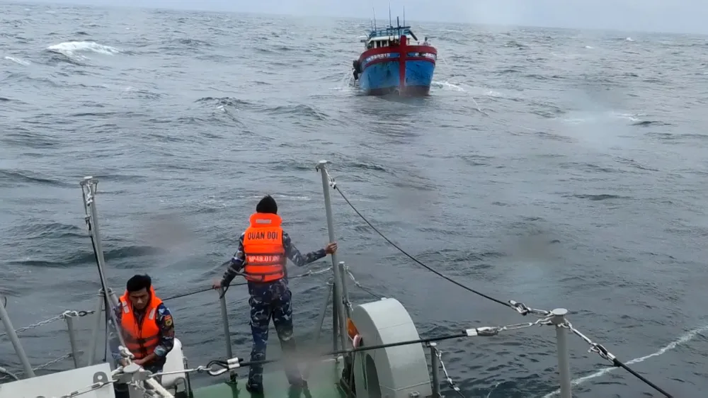 Đến khoảng 23 giờ đêm, tàu biên phòng đã hỗ trợ lai dắt các tàu cá trở về cảng Quy Nhơn an toàn.