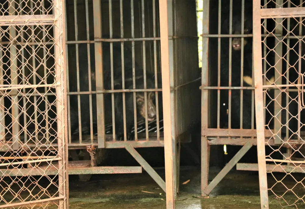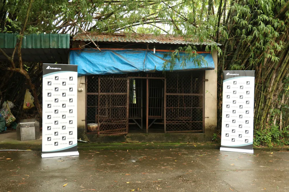 Hai cá thể gấu được nuôi nhốt trong một khu nhà tối có mái che, trong lồng và cửa lưới sắt. Để đưa được 2 con gấu ra khỏi khu nuôi nhốt, các bác sĩ đã gây mê để khám sức khoẻ lâm sàng, đánh giá hiện trạng gấu và đưa chúng lên lồng vận chuyển đặt sẵn trên xe tải.