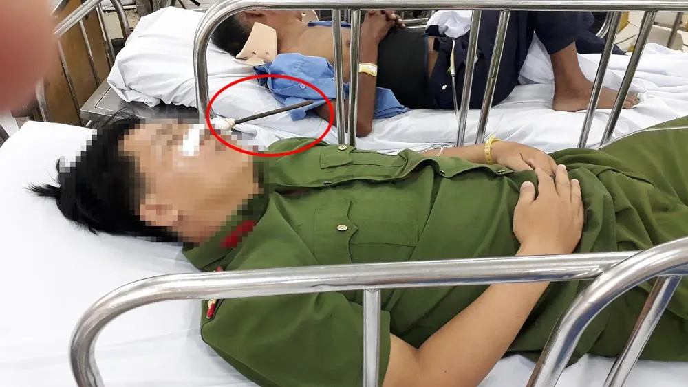 Trước đó, ngày 22-7, trong lúc đang làm nhiệm vụ trên tuyến đường tỉnh 831, ông Nguyễn Minh V., Trưởng Công an xã Tuyên Bình, huyện Vĩnh Hưng, tỉnh Long An bị một thanh sắt bay cắm vào mặt, đâm xuyên đầu, làm nạn nhân bất tỉnh.