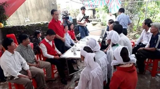 Ông Trần Quốc Hùng, Phó Chủ tịch Hội Chữ thập đỏ Việt Nam đến thăm hỏi, chia buồn với gia đình ông Nguyễn Ngọc Quế ở xóm Mới, xã Nghi Thiết, huyện Nghi Lộc, tỉnh Nghệ An bị thiệt mạng do lũ