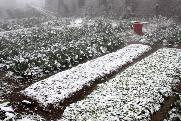 Vườn rau tăng gia của học sinh các trường trên địa bàn phủ trắng tuyết