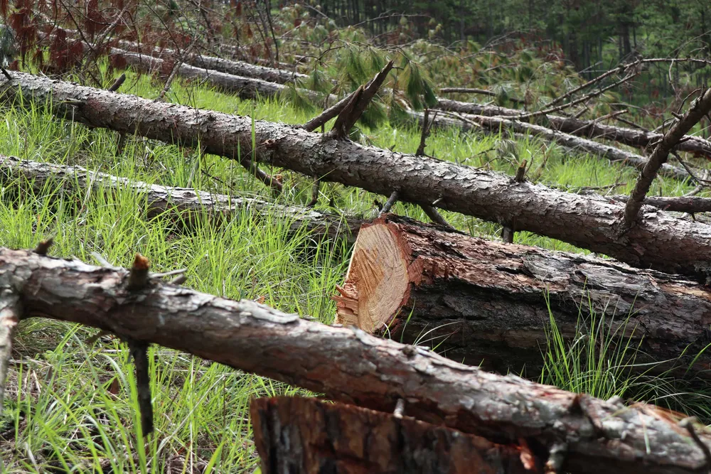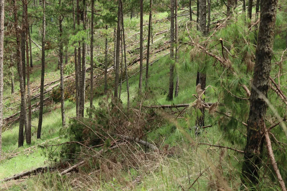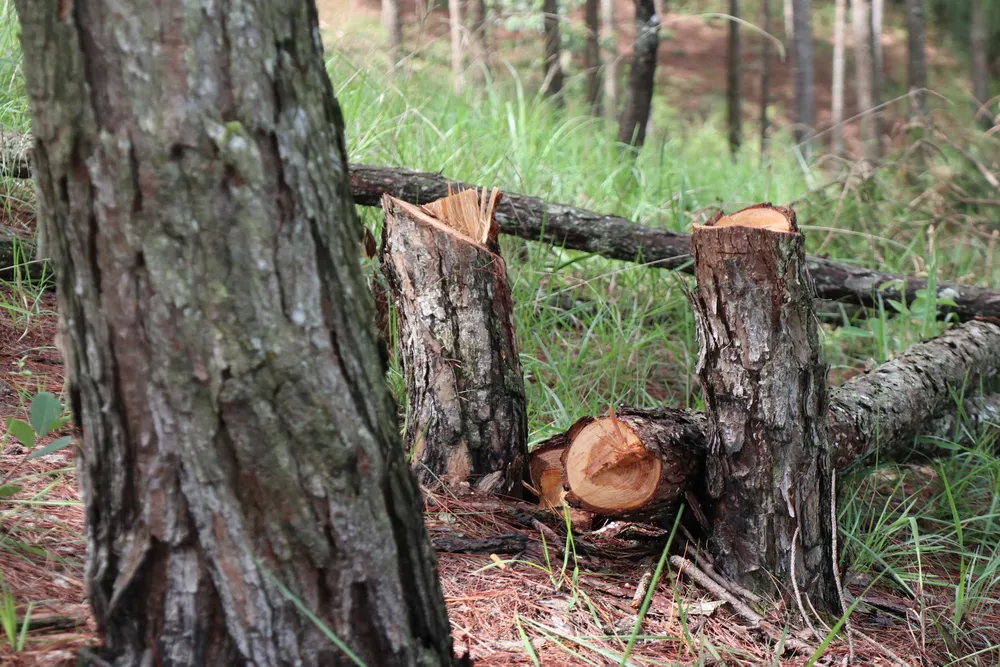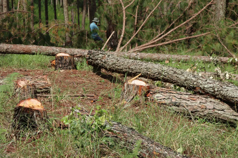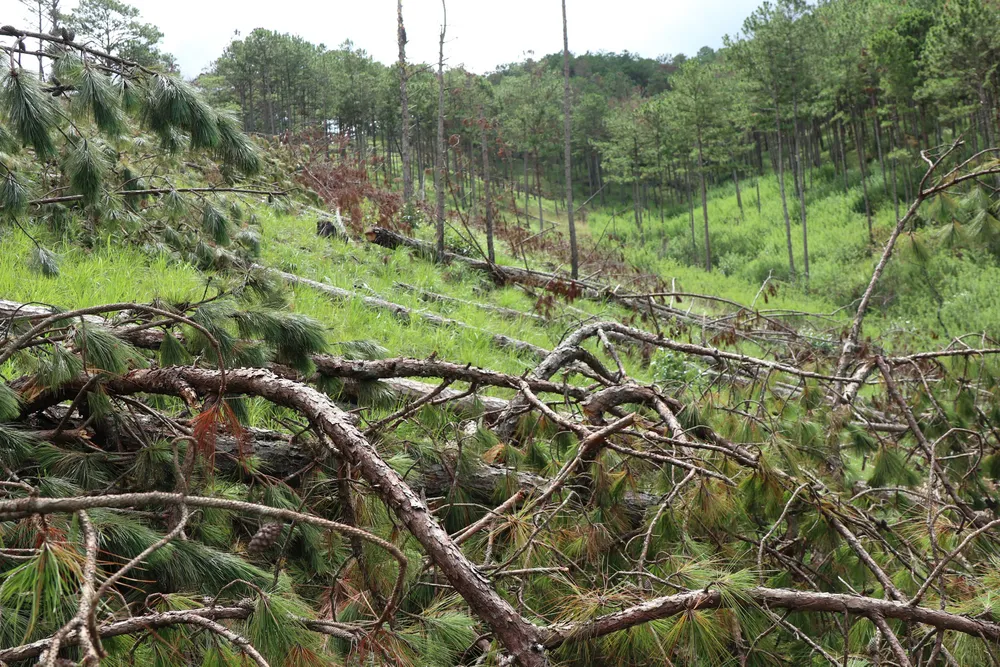 Theo dấu vết hiện trường, nhiều cây thông ba lá bị cưa vẫn còn lá xanh, tươi cho thấy rừng bị phá chỉ khoảng một vài ngày trước đó.