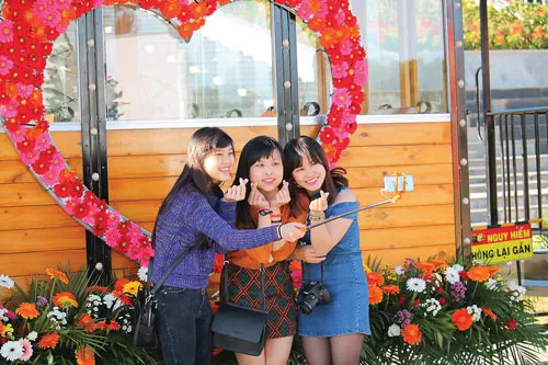 Nhiều bạn trẻ thích thú chụp ảnh với các không gian hoa