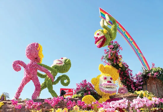 Những chú khỉ được kết từ nhiều loài hoa khác nhau để chào đón năm mới Bính Thân 2016