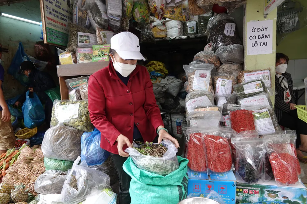 Bà Lê Thị Thu Hương (SN 1972, chủ quầy Thuốc nam Hùng Hương) cho biết, 2, 3 ngày qua, các hàng như chanh, sả, hương nhu, ngải cứu, tía tô, lá bưởi... đều được nhập sỉ liên tục trong buổi. Trung bình một ngày, tôi bán được gấp 4-5 lần ngày thường.