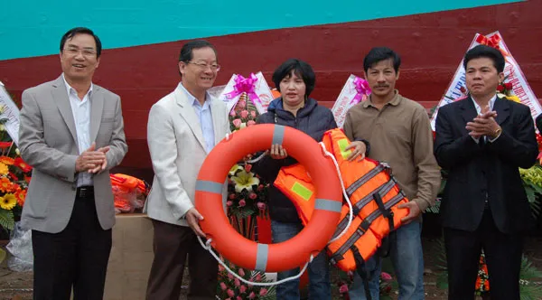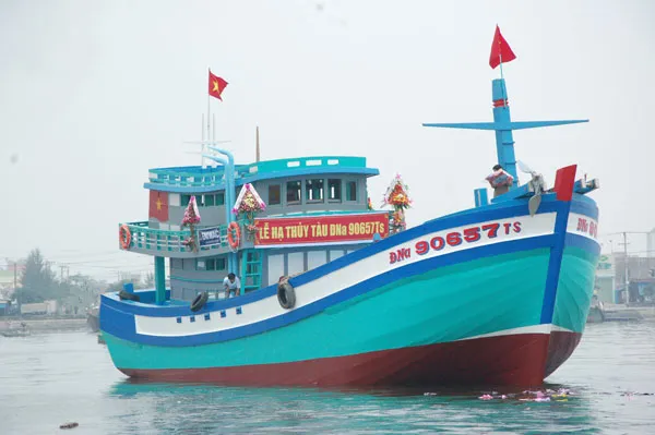 Có mặt tại buổi lễ hạ thủy tàu Đna 90657, ông Phùng Tấn Viết, Phó Chủ tịch UBND TP Đà Nẵng hoan nghênh quyết tâm vươn khơi, bám biển của gia đình bà Hoa, góp phần bảo vệ chủ quyền biển đảo của Tổ quốc.