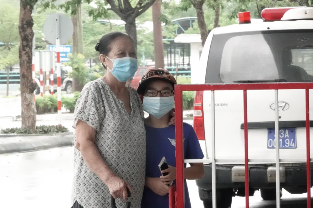 Chờ đợi tại sân bay Đà Nẵng, ông Lương Đức Khoan (gần 70 tuổi, trú tại đường Lý Thái Tổ, quận Thanh Khê, TP Đà Nẵng) nghẹn ngào chờ đón cháu nội Lương Đức Tín (10 tuổi) sau 5 tháng xa cách.