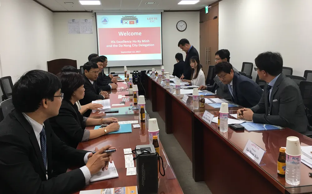 Tại Seoul, ngày 12-9, đoàn công tác TP Đà Nẵng đã đến thăm làm việc với các nhà đầu tư tiềm năng trong lĩnh vực bất động sản - thương mại như Công ty Lotte E&C thuộc Tập đoàn Lotte, Công ty Daehan A&C.