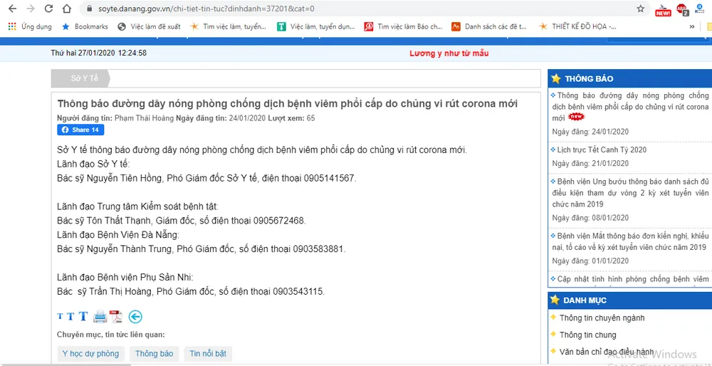 Bên cạnh đó, Sở Y tế TP Đà Nẵng vừa thông báo tiếp tục triển khai công tác phòng chống dịch bệnh viêm đường hô hấp cấp do virus Corona mới. Cụ thể như, chủ trì, phối hợp với các cơ quan triển khai Công điện số 121/CĐ-TTg ngày 23-01-2019 của Thủ tướng Chính phủ về việc phòng chống dịch bệnh viêm đường hô hấp cấp do chủng mới của virus Corona gây ra; chỉ đạo Trung tâm Kiểm soát bệnh tật kiểm soát chặt chẽ hành khách nhập cảnh tại các cửa khẩu (sân bay, bến cảng) 24/24 giờ; tăng cường giám sát tại cộng đồng, thực hiện tốt quy trình xử lý, cách ly.
