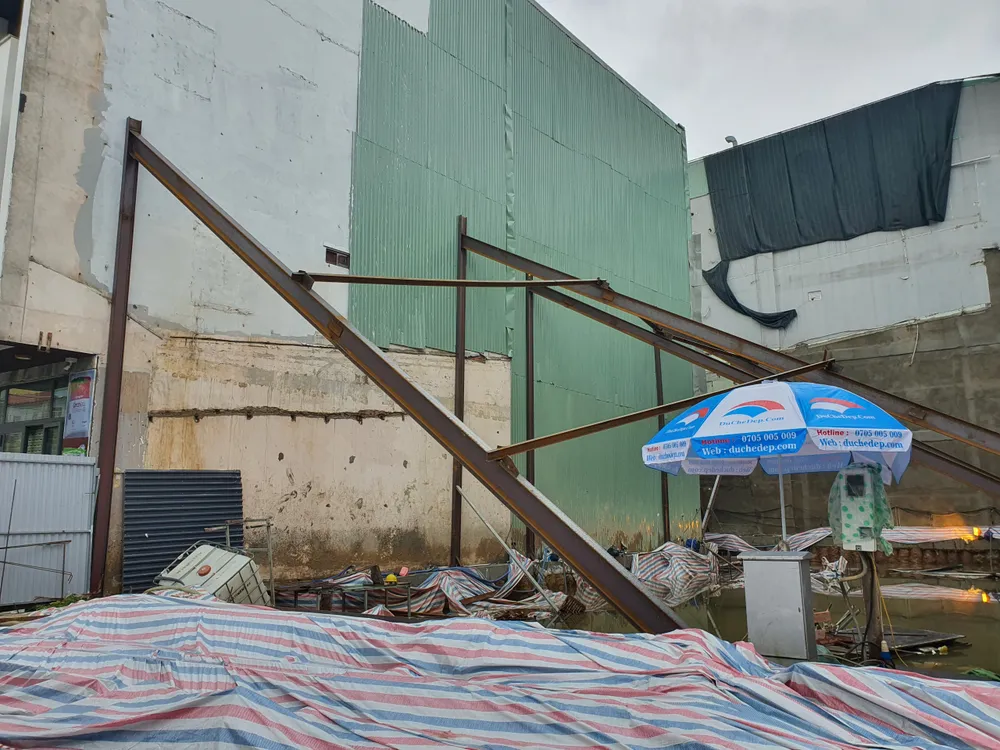 Theo đó, mưa lớn kéo dài, một công trình xây dựng nhà ở tư nhân đang giai đoạn thi công, làm nền móng bị ngập sâu đã gây ra tình trạng sụt lún các ngôi nhà lân cận.