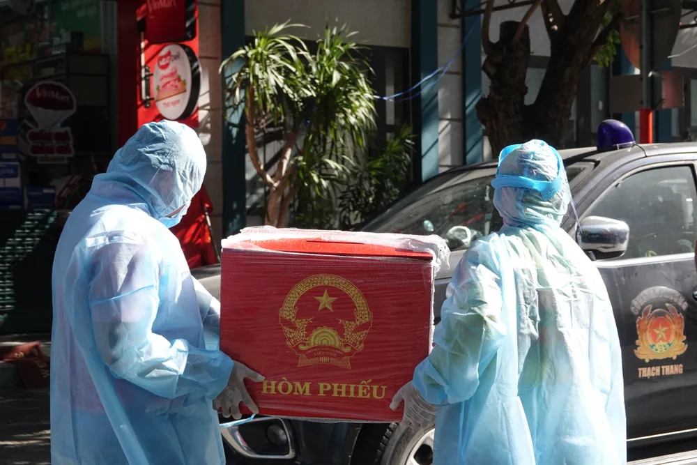 Theo ông Nguyễn Chí Lý, Phó Chủ tịch UBND phường Thạch Thang cho biết, trong khu phong tỏa này, đơn vị dự kiến có hơn 300 cử tri sẽ tham gia trong ngày bầu cử sắp đến. Khác biệt với những nơi bầu cử trên địa bàn, tổ bầu cử gồm 2 nhóm: cán bộ ngoài hàng rào và cán bộ trong hàng rào phong tỏa. Những cán bộ trong hàng rào phong tỏa được thành lập từ tổ phòng chống Covid-19 cộng đồng.