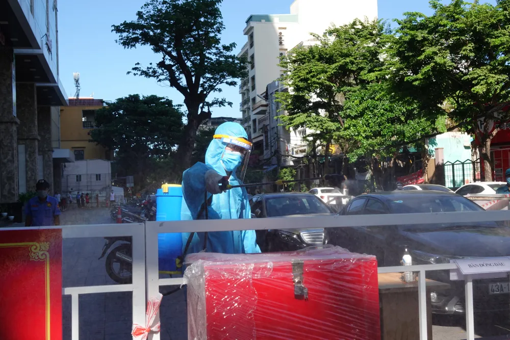 Tại chung cư F-Home (16 đường Lý Thường Kiệt, phường Thạch Thang, TP Đà Nẵng), đây là nơi phong tỏa cho các trường hợp là F1 liên quan đến 2 ca dương tính với SARS-CoV-2 tại Thẩm mỹ viện Amida có lịch trình di chuyển đến chung cư.