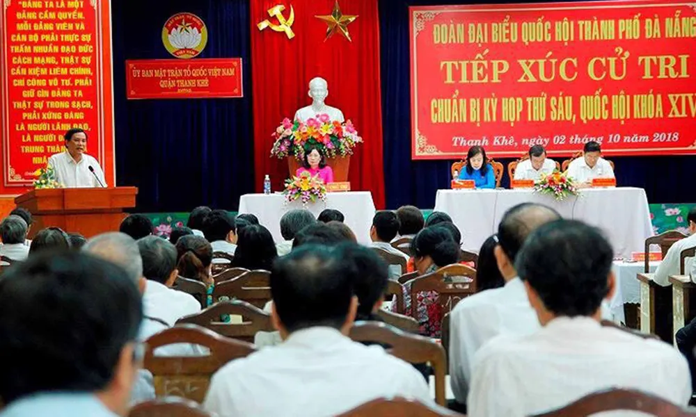 Ngày 2-10, Đoàn Đại biểu Quốc hội TP Đà Nẵng tiến hành tiếp xúc cử tri quận Thanh Khê, (TP Đà Nẵng) nhằm lắng nghe các ý kiến cử tri trên địa bàn cũng như chuẩn bị cho kỳ họp thứ 6 - Quốc hội khóa XIV.