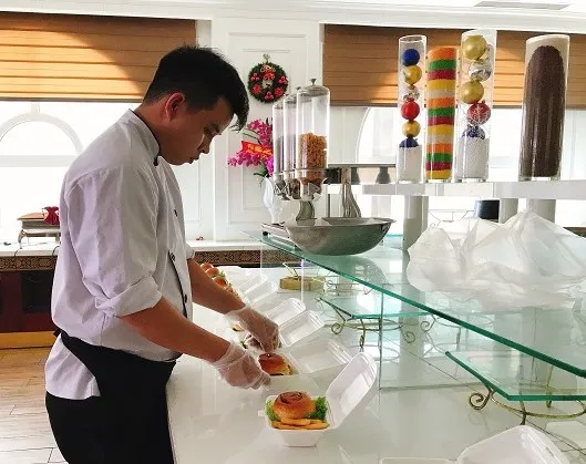 Khách sạn Sam Grand chuẩn bị suất ăn đtheo phong cách châu Âu phục vụ cho khách tại khu cách ly