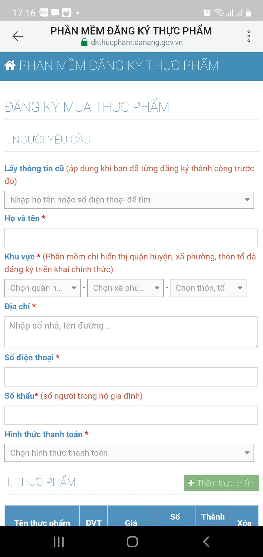 Để đăng ký thực phẩm, người dân có thể vào “Tổng đài 1022 Đà Nẵng” trên Zalo chọn “Đăng ký thực phẩm” hoặc vào http://dkthucpham.danang.gov.vn.