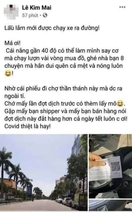 Sau khi về nhà, bà M. đăng tải bài viết về việc sử dụng giấy đi đường đi đến nhà bạn trên tài khoản facebook cá nhân.