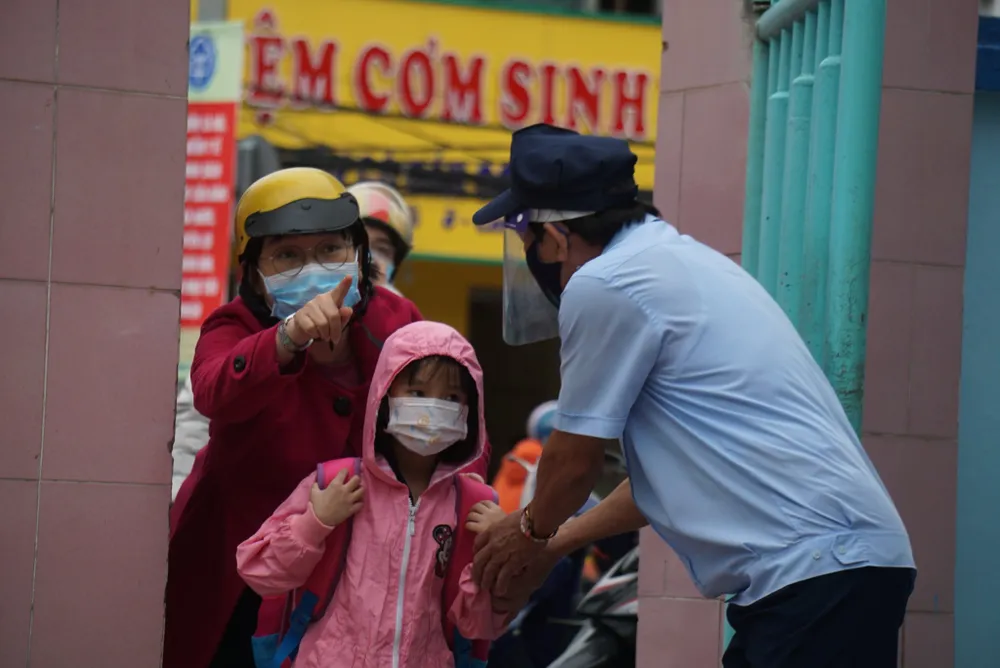 Ghi nhận tại Trường Tiểu học Lý Tự Trọng (quận Hải Châu, TP Đà Nẵng), để đảm bảo công tác phòng dịch nên trường đã phân luồng riêng, phụ huynh được yêu cầu chỉ đưa học sinh đến cổng. Đối với học sinh lớp 1, các em được giáo viên hướng dẫn về chỗ ngồi của lớp mình. Theo khảo sát, khối 1 có hơn 80,4% học sinh tới lớp.