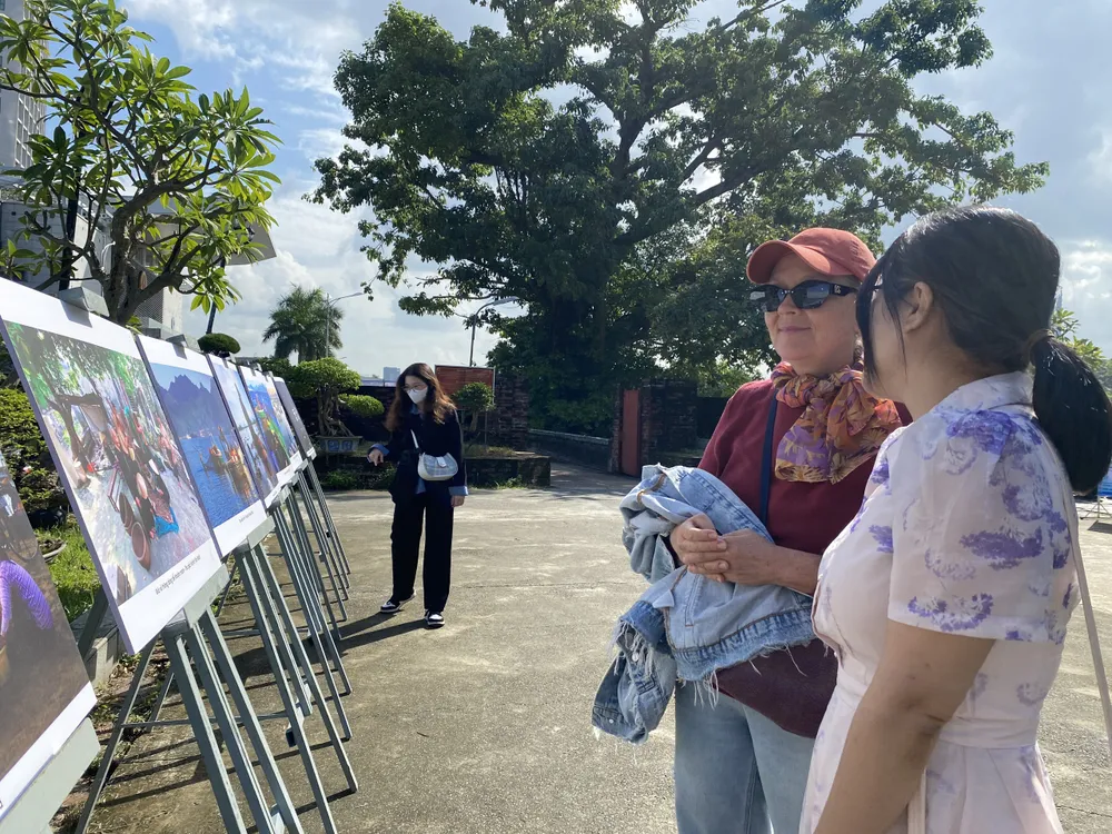 | Người dân và du khách tham quan triển lãm ảnh "Chuyện làng biển" |