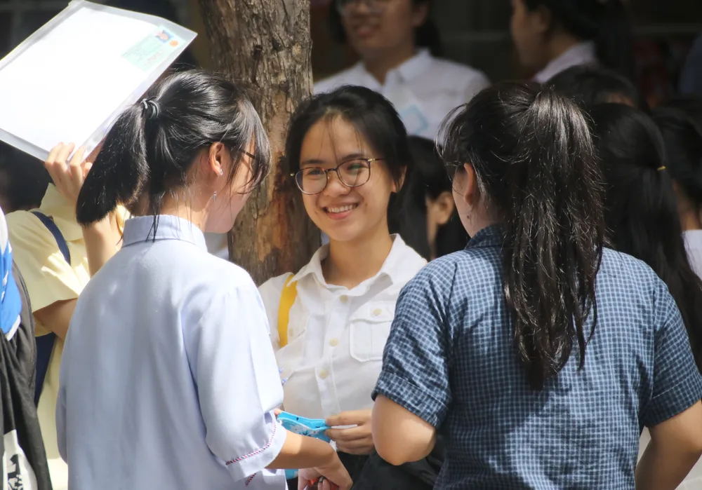 Đà Nẵng: Không có thí sinh, cán bộ nào vi phạm quy chế thi  ảnh 2 Thí sinh trao đổi với nhau sau khi ra khỏi phòng thi