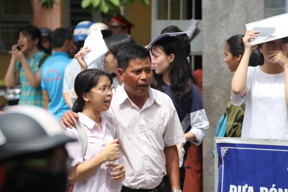 Đón con gái vừa thi xong môn Văn