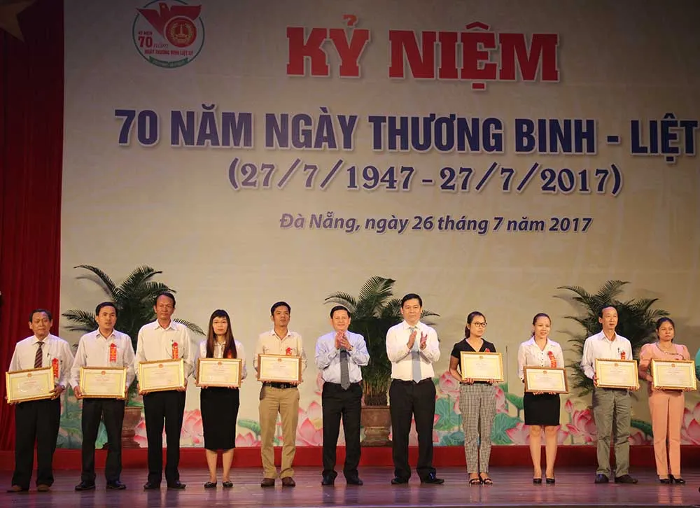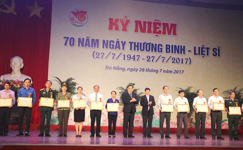 Sáng 26-7, TP Đà Nẵng long trọng tổ chức Kỷ niệm 70 năm Ngày Thương binh - Liệt sĩ (27-7-1947 – 27-7-2017), tổng kết 20 năm thực hiện Pháp lệnh Ưu đãi người có công với cách mạng và Chương trình Hỗ trợ sửa chữa nhà ở người có công với cách mạng năm 2017 trên địa bàn thành phố.