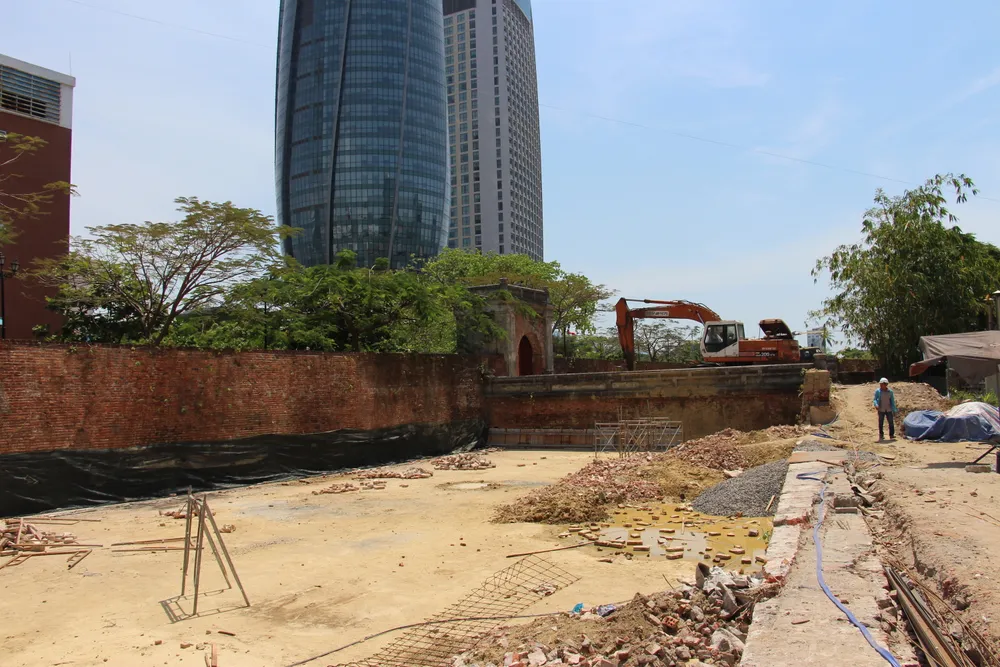 Bên cạnh đó, tiến hành các công tác thi công tu bổ, phục hồi cho phần tường hào tiếp theo đúng như hồ sơ thiết kế bản vẽ thi công đã được phê duyệt, tuân thủ nguyên tắc bảo tồn di tích, di sản văn hóa.